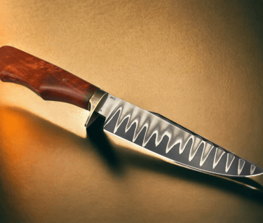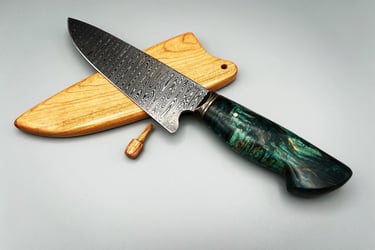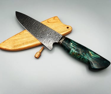 #52. Utility Chef 6-1/2" Ladder Damascus with Cherry Saya $300.