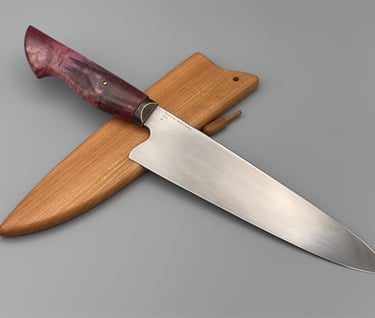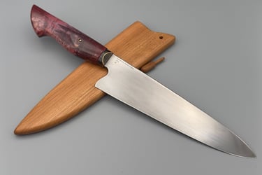 #96. Chef 8-1/2" W2 w/hamon and patina. Cherry Saya $250.